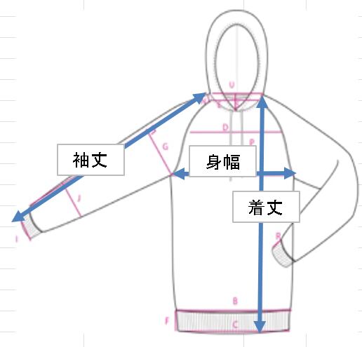 -XS 身幅 51cm、着丈 69cm、袖丈 79cm